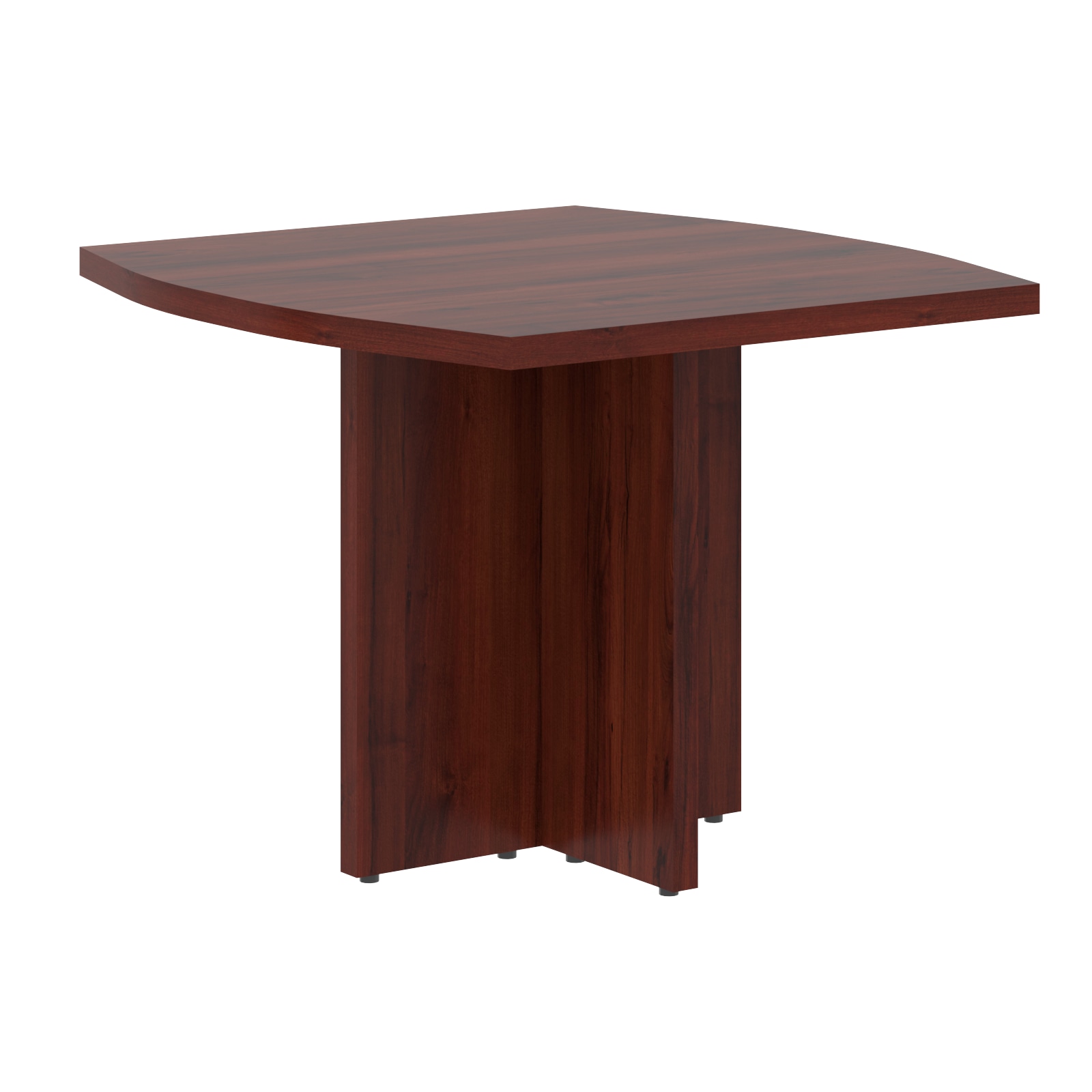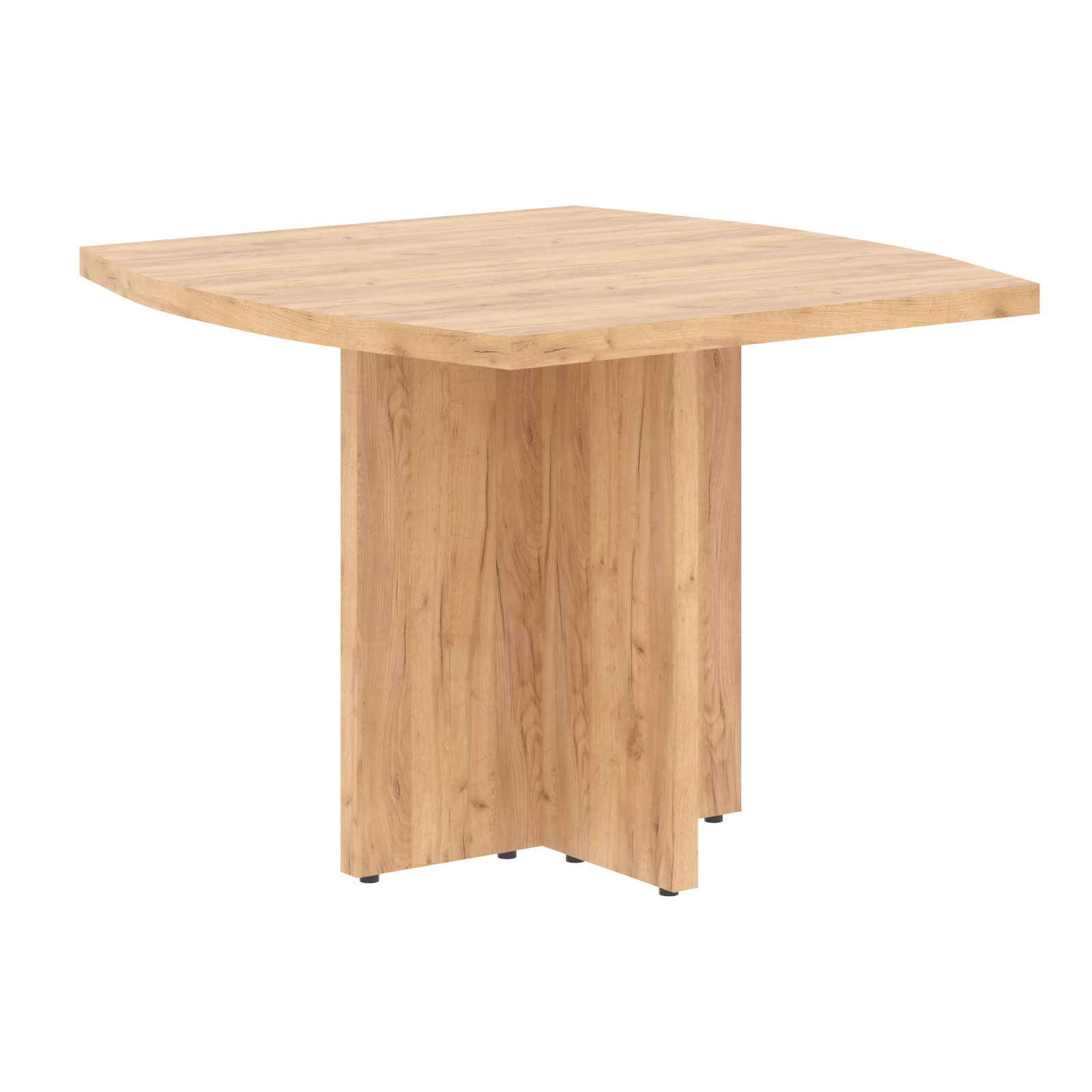 Переговорный стол изготовлен из высококачественного ЛДСП толщиной 38 мм, обеспечивающего прочность и долговечность конструкции. Столешница обработана кромочным материалом ПВХ двух толщин: основной слой — 2 мм, гарантирующий надежную защиту от повреждений и влаги, дополнительный декоративный слой — 0,8 мм, придающий поверхности эстетичный внешний вид и дополнительную износостойкость.