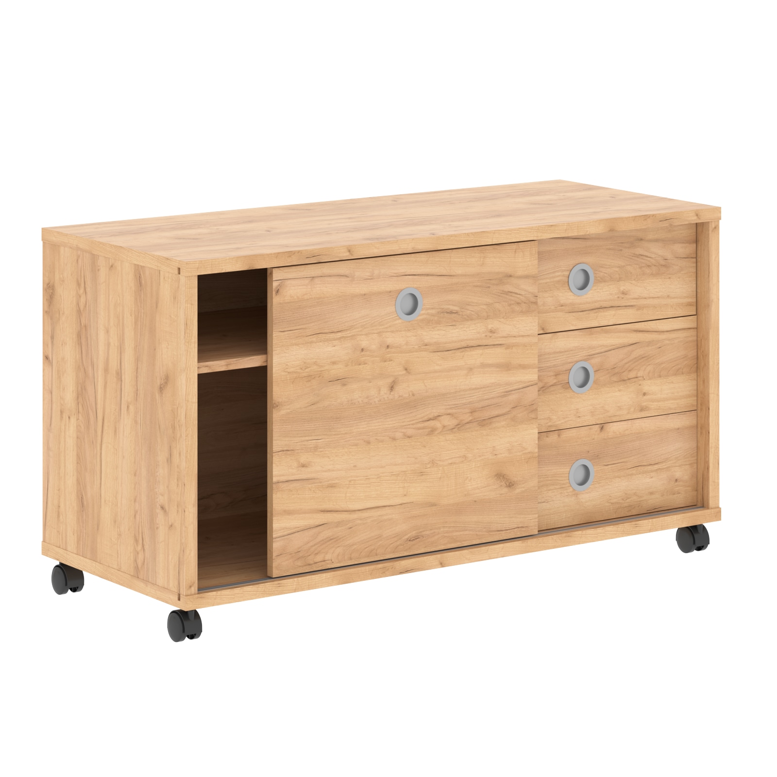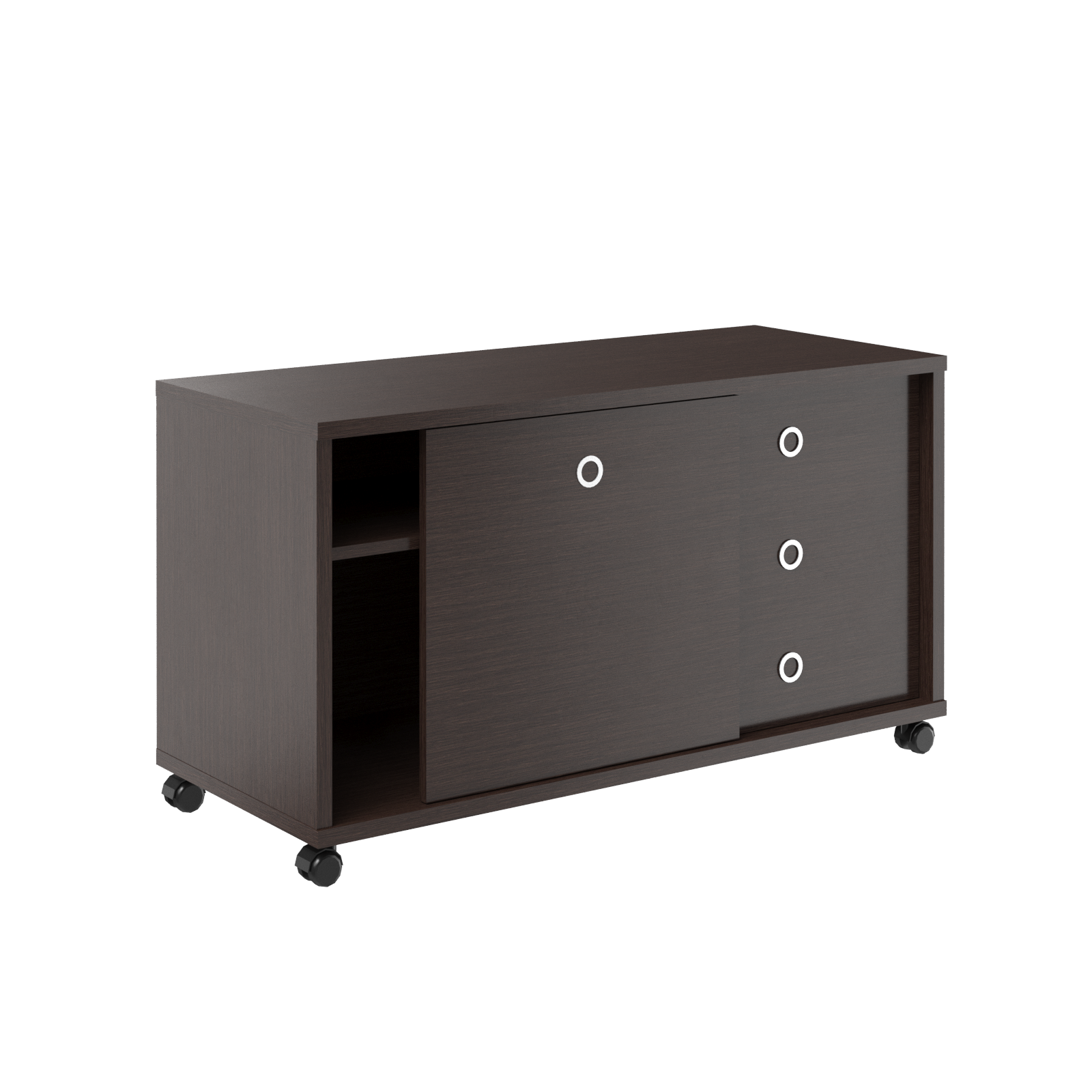 Представляем удобную и функциональную мобильную тумбу, изготовленную из высокопрочного материала — ЛДСП. Ее каркас выполнен из ЛДСП толщиной 25 мм, что обеспечивает высокую степень надежности и долговечности. Полки и задняя стенка изготовлены из ЛДСП толщиной 18 мм, способствуя увеличению внутреннего объема и поддержанию формы даже при длительном использовании. Дополнительную привлекательность и легкость в обращении придает декоративная слайд-дверь из ЛДСП толщиной 18 мм, позволяющая удобно организовывать хранение вещей и документов. Практичность и эстетику подчеркивает качественная врезная ручка цвета алюминий, удобная и простая в уходе. Внутри расположены удобные ящики-фолдинги размерами 400х539х400 мм, которые можно установить как слева, так и справа, адаптируясь под любые потребности.