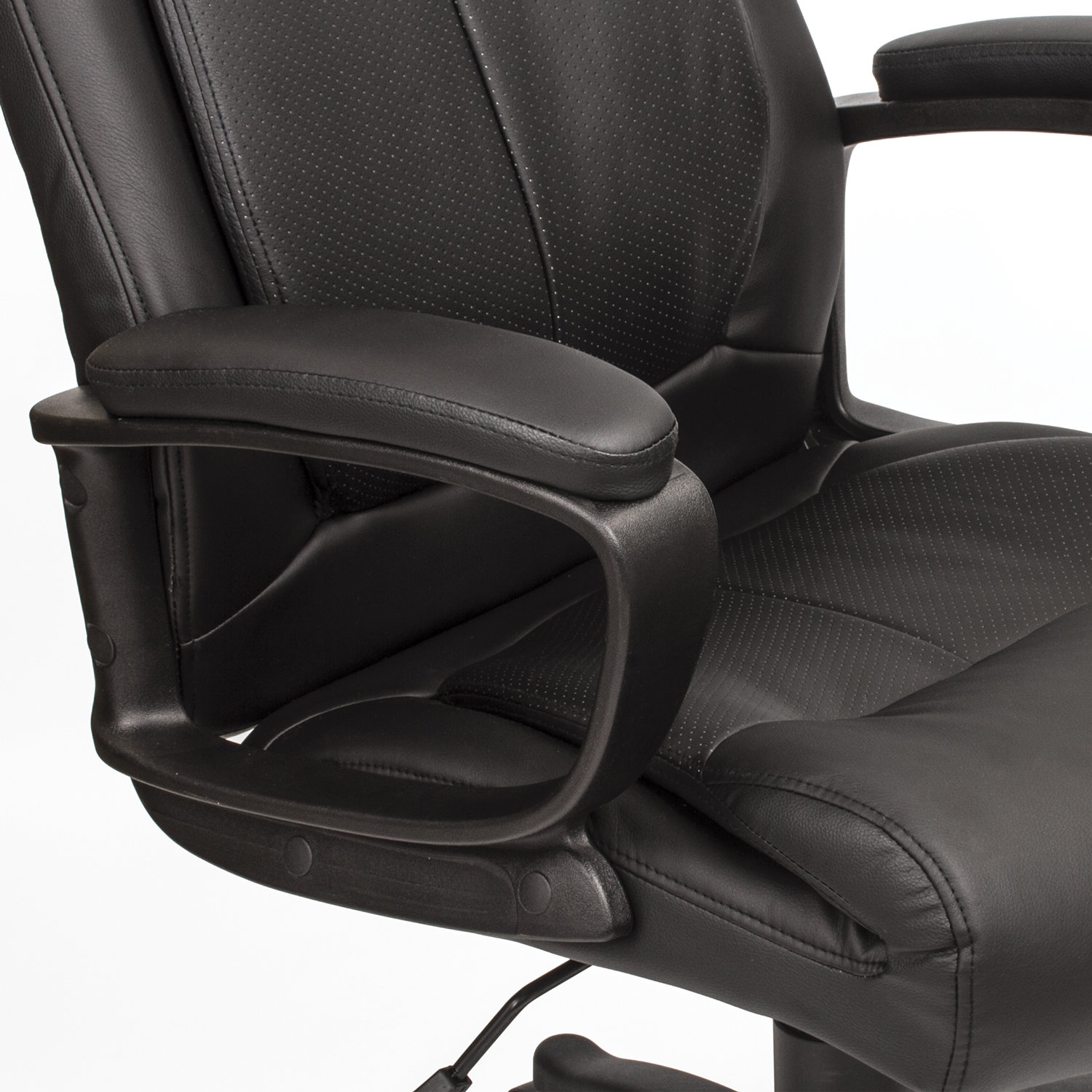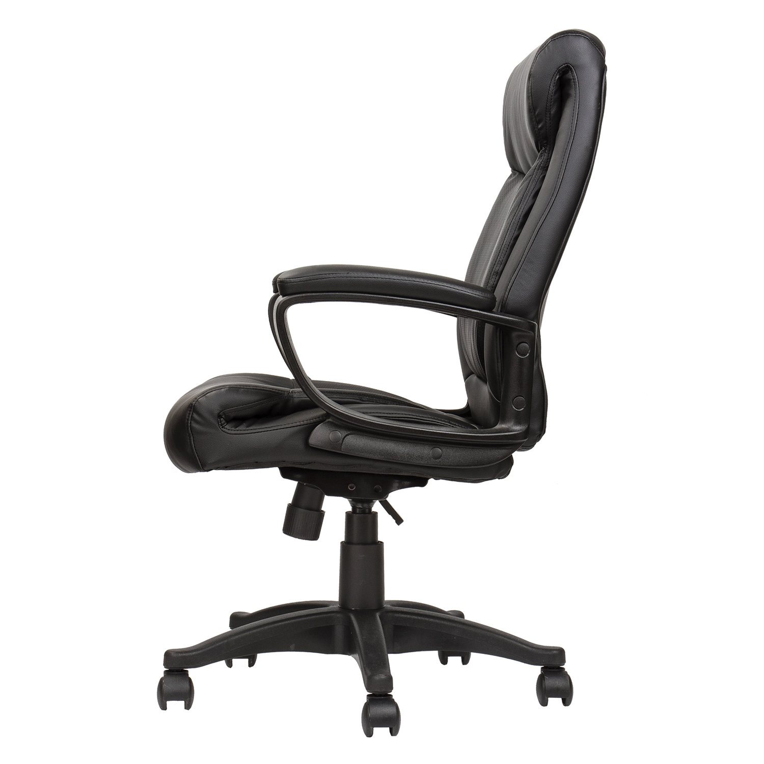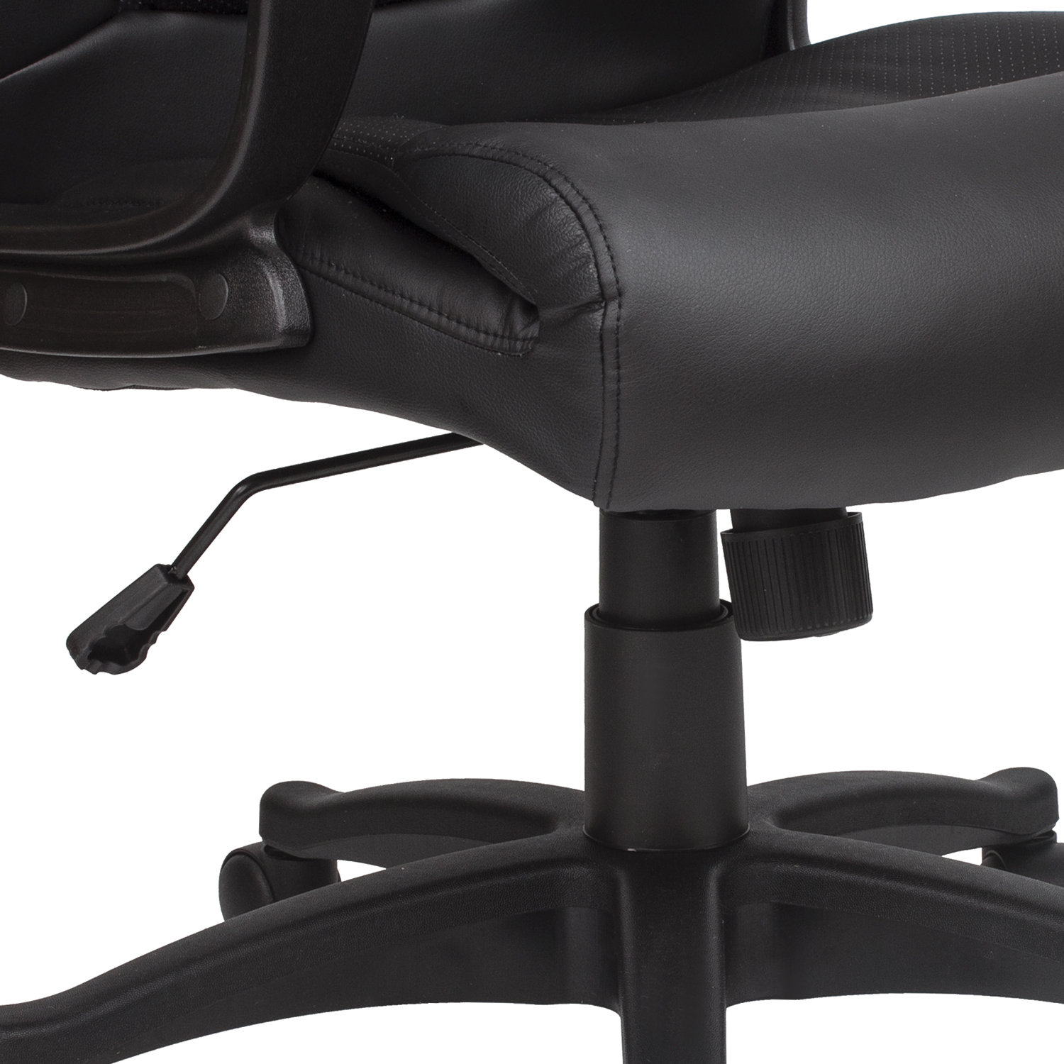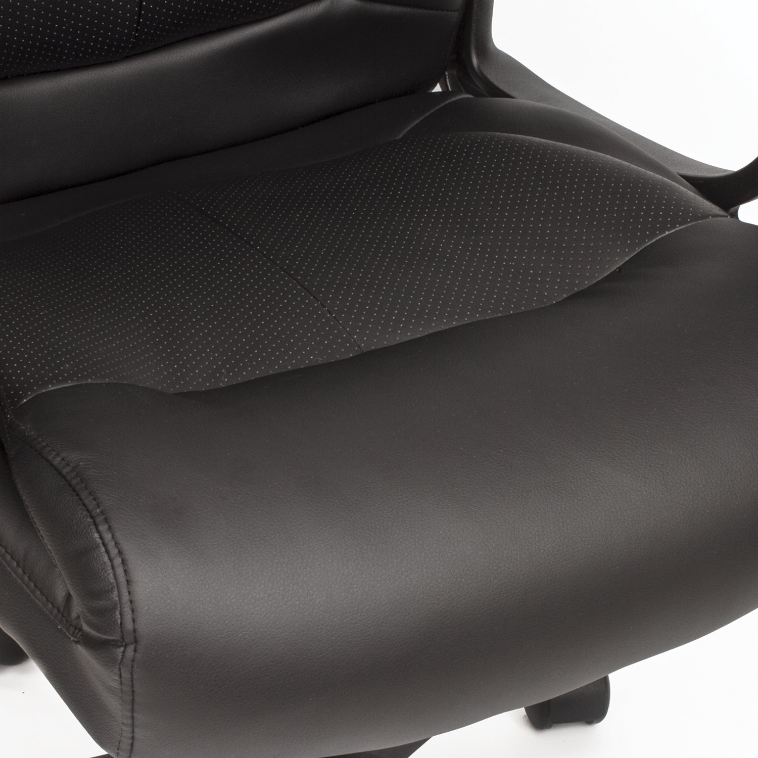 Премиальная обивка. Кресло обтянуто высококачественной экокожей глубокого чёрного цвета. В составе материала — хлопок и пористый полиуретан, что обеспечивает: