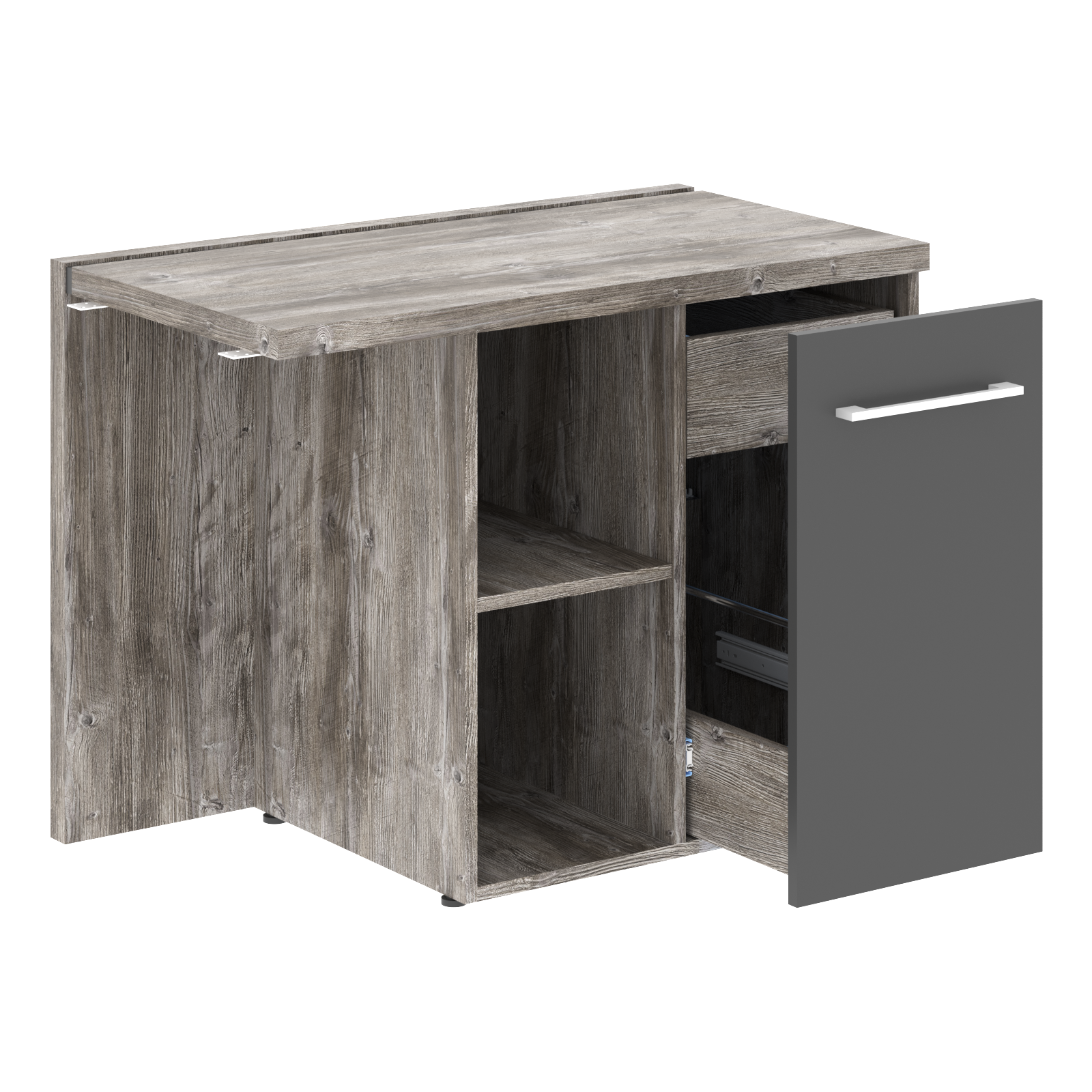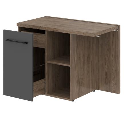 Толстая 38-миллиметровая столешница и прочные опоры из ЛДСП, защищенные 2-миллиметровой ПВХ-кромкой, гарантируют надежность и долговечность. Особое внимание уделено безопасности: центральный замок позволяет одним движением запирать все выдвижные ящики, обеспечивая сохранность ваших ценных вещей. Стильная черная металлическая фурнитура подчеркивает современный дизайн.