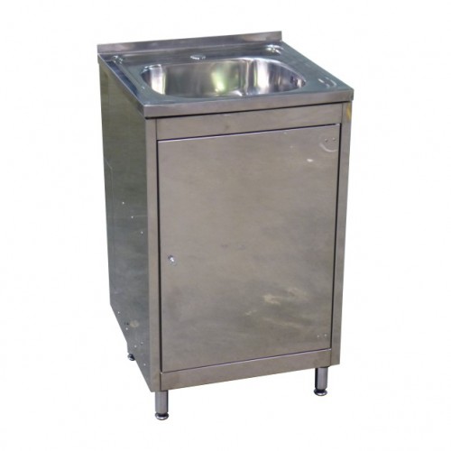 Корпус мойки изготовлен из нержавеющей стали AISI 430. На каркас закреплена одночашечная нержавеющая мойка. На торцевых стенках мойки установлены съемные доборные элементы для пропуска сантехнических систем подачи воды и канализации. Поставляется в собранном виде.