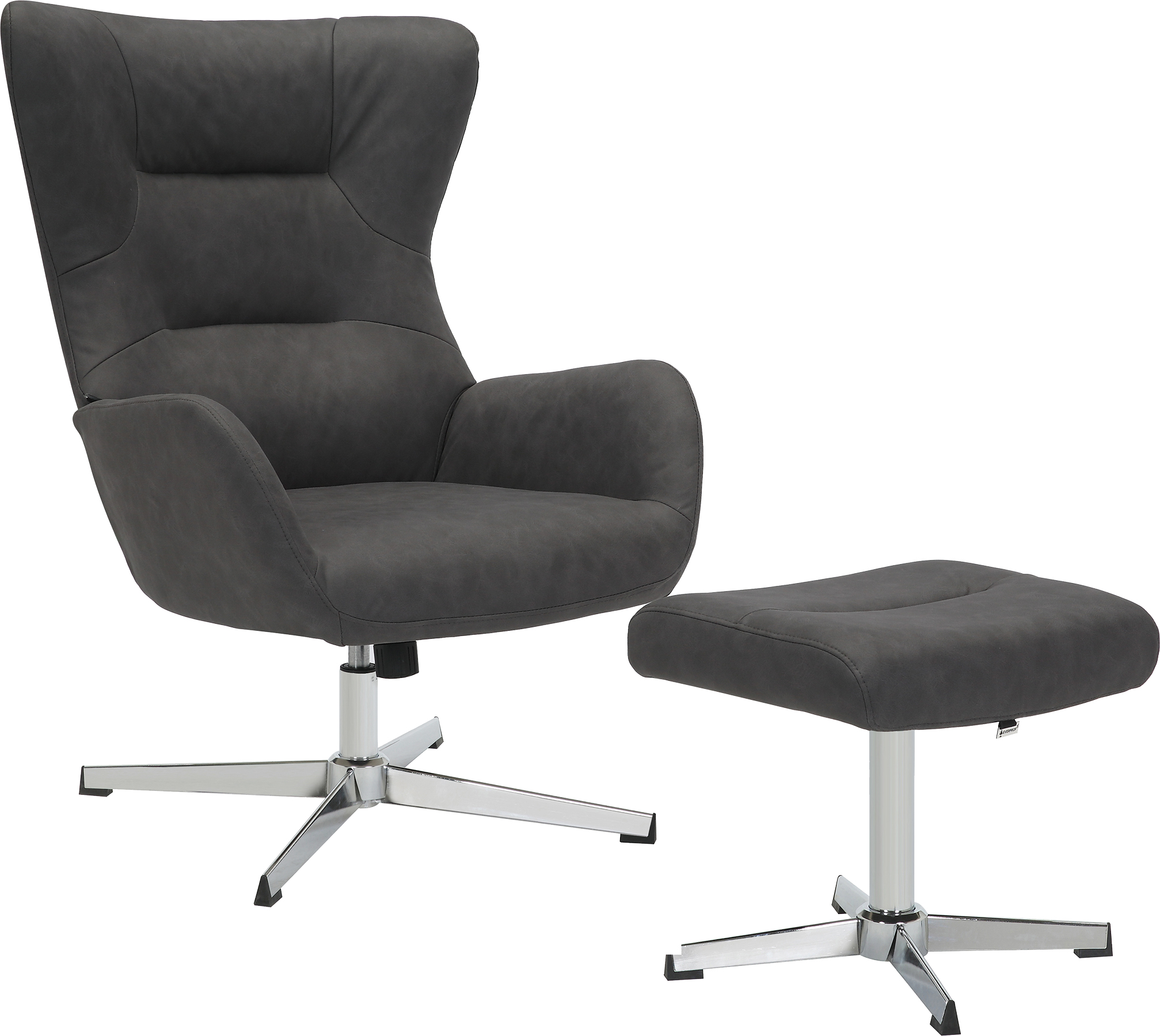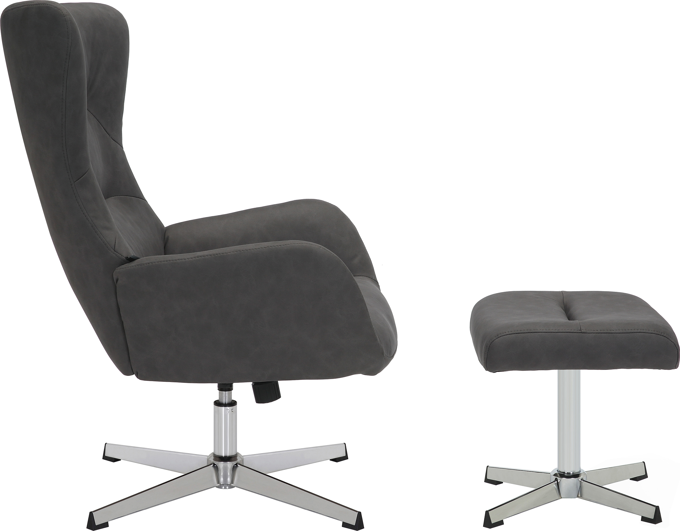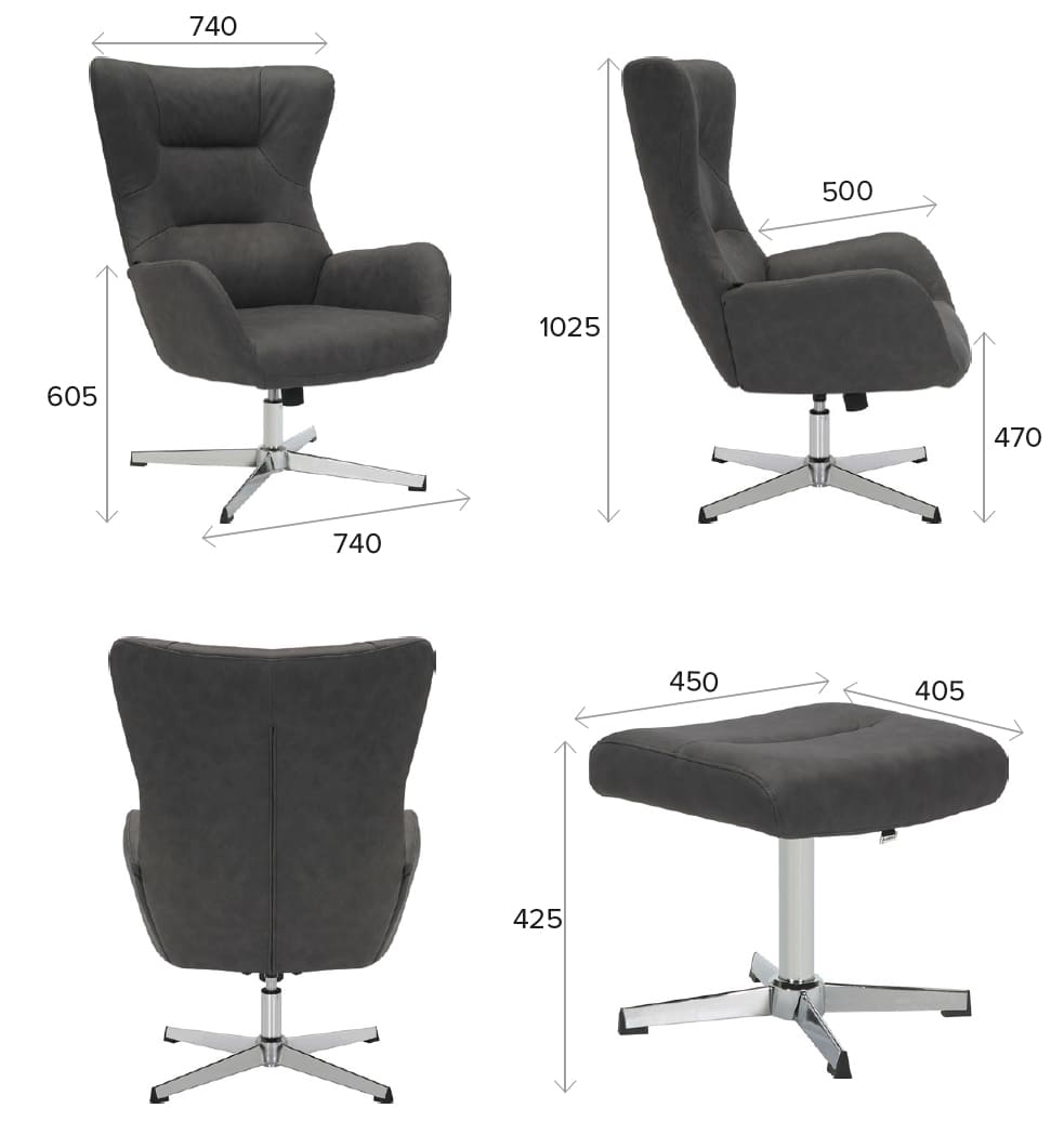 Зона релаксации в одном комплекте. В набор входит стильный пуф, который превращает кресло в полноценное место для отдыха — достаточно откинуться назад и положить ноги на пуф, чтобы погрузиться в состояние полного расслабления.