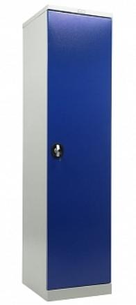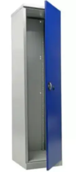 Стильное цветовое решение — серый полуматовый корпус (RAL 7038) с синими дверями (RAL 5002) — органично впишется в любое рабочее пространство. Шкаф поставляется в разобранном виде для удобства транспортировки.