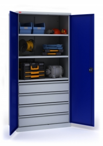 - Цвет: корпус светло-серый (RAL 7035), двери синие (RAL 5002), возможна покраска в любой цвет RAL