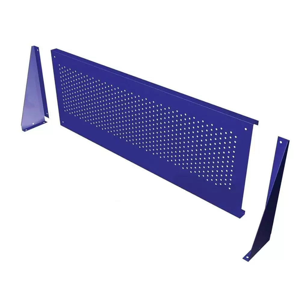 Перфорированный экран для металлического верстака Экран Э-1 (для верстаков ВП-1, ВП-Э). Перфорированный экран не входит в стандартную комплектацию верстаков и приобретается отдельно. В комплектацию перфорированного экрана входят также два кронштейна для крепления экрана к столешнице верстака металлического и крепеж. Толщина металла экрана - 1,2 мм. Диаметр отверстия - 7,0 мм. Все модели могут дополнительно комплектоваться металлическими крючками 8 см и 5 см длиной, удлиненными полками, укороченными полками, держателем для ключей и держателем для инструментов.