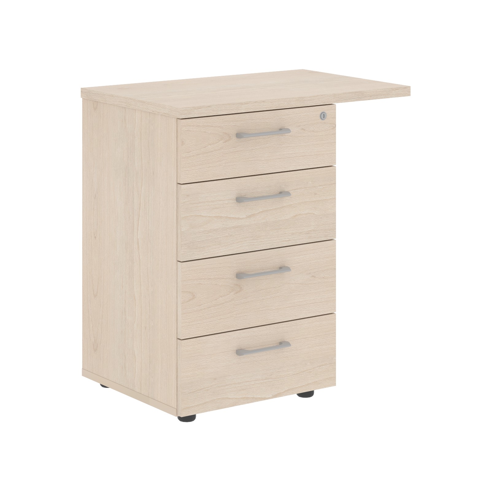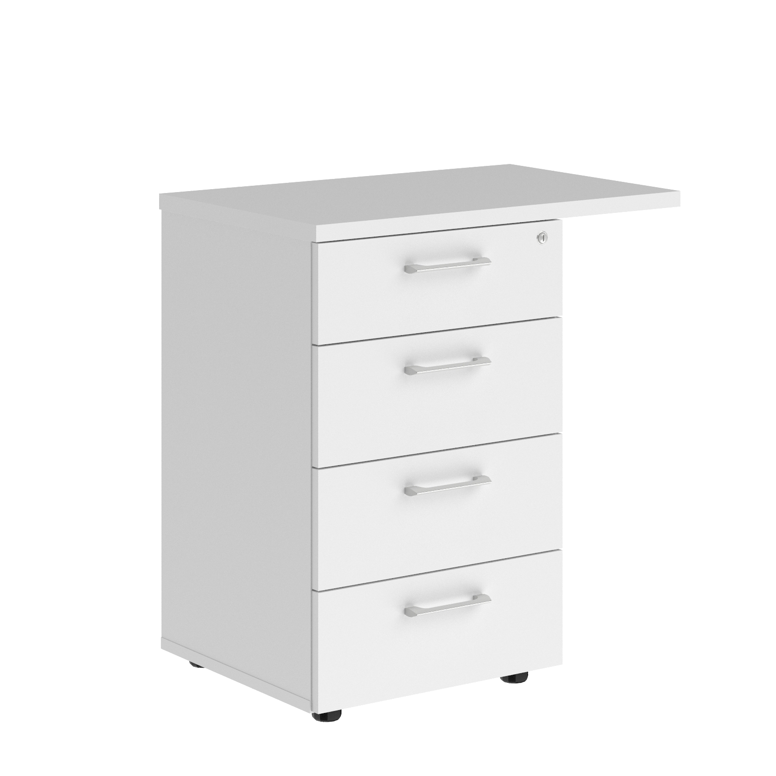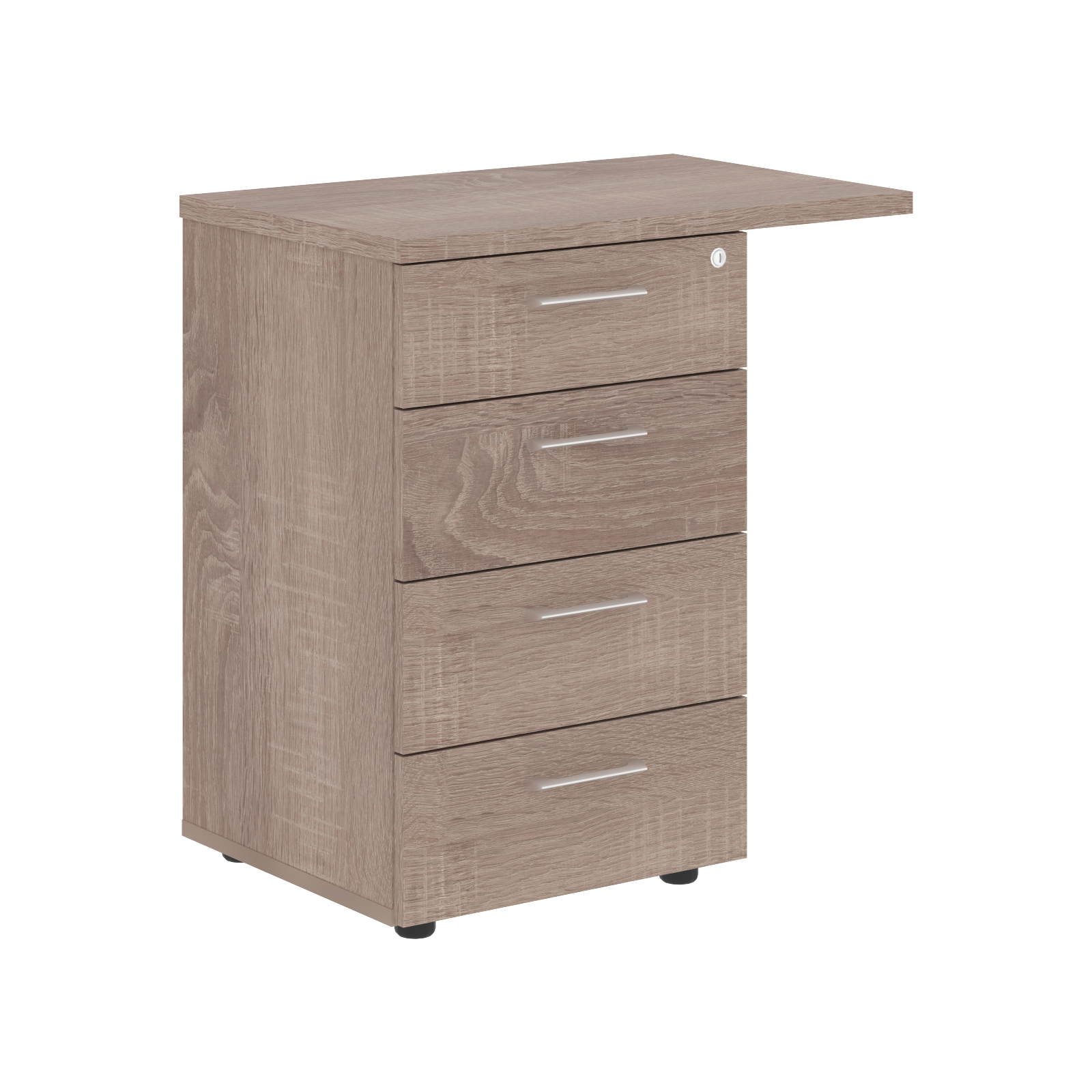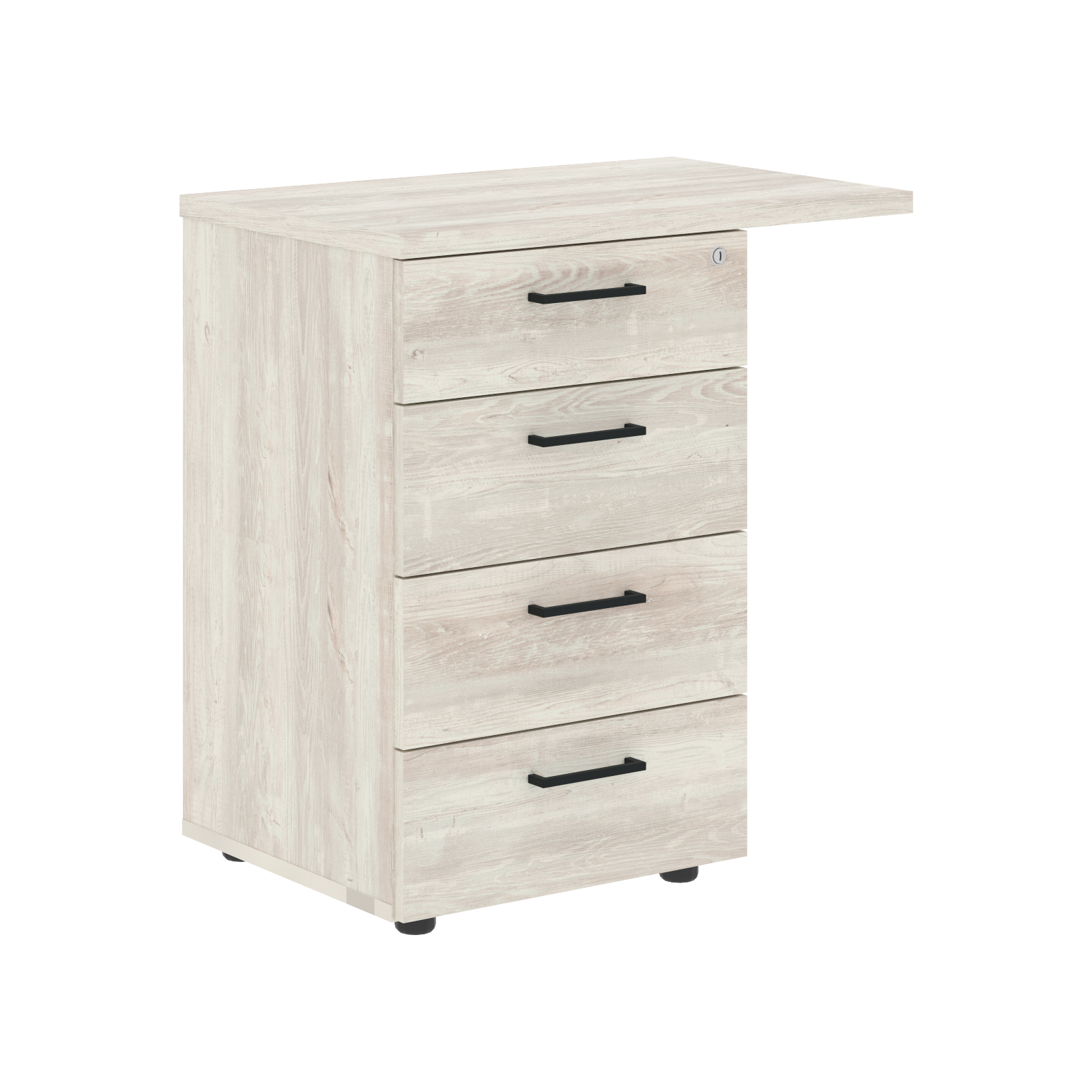 Представляем приставную тумбу — современное решение для организации пространства. Каркас, фасады и задняя стенка выполнены из ЛДСП толщиной 18 мм, а верхняя панель — из ЛДСП 25 мм, что обеспечивает надежность конструкции. Центральный замок позволяет защитить содержимое всех трех ящиков, а технология фолдинг гарантирует плавное открытие ящиков. Тумба оснащена колесной опорой для удобного перемещения